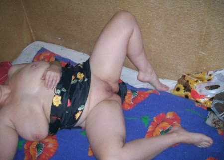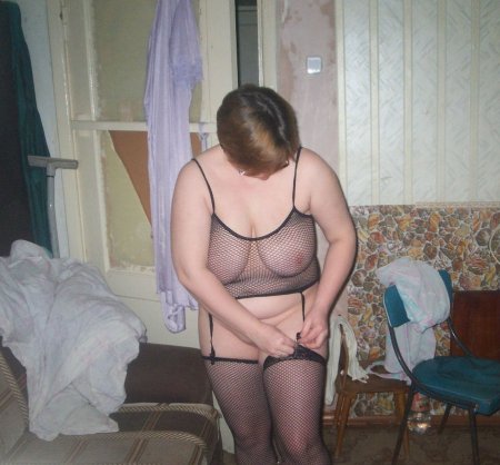 Русская пышная дама снялась в домашней фото сессии снявшись на фото полностью голая и в сетчатых чулках, показав свое пышное тело и большую грудь.