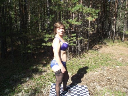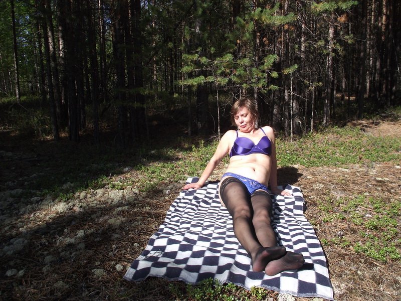 училка Ирина позирует в лесу в нижнем белье и полностью обнаженная